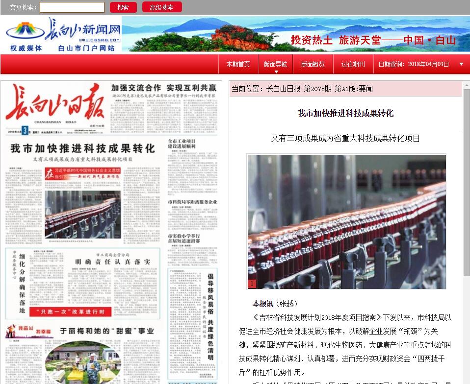 【長(zhǎng)白山日?qǐng)?bào)】--我市加快推進(jìn)科技成果轉(zhuǎn)化——又有三項(xiàng)成果成為省重大科技成果轉(zhuǎn)化項(xiàng)目